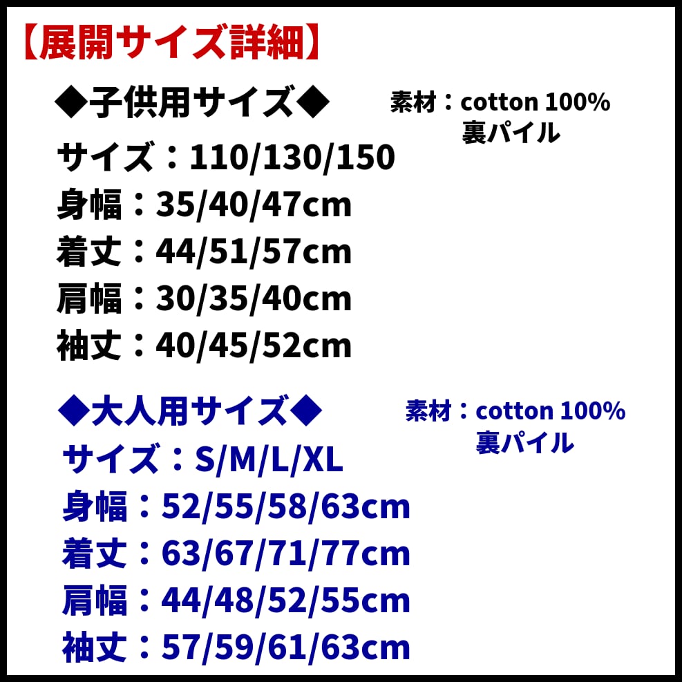 プリントサイズはすべて15cmx15cmで、小さい子供サイズほど目立つデザインになっております。