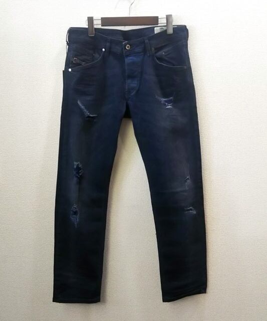 【大創業祭SALE!さらに送料無料】DIESEL (ディーゼル) スリムストレッチテーパードデニムパンツ/クラッシュダメージジーンズ/BELTHER (インディゴ) W28~W34