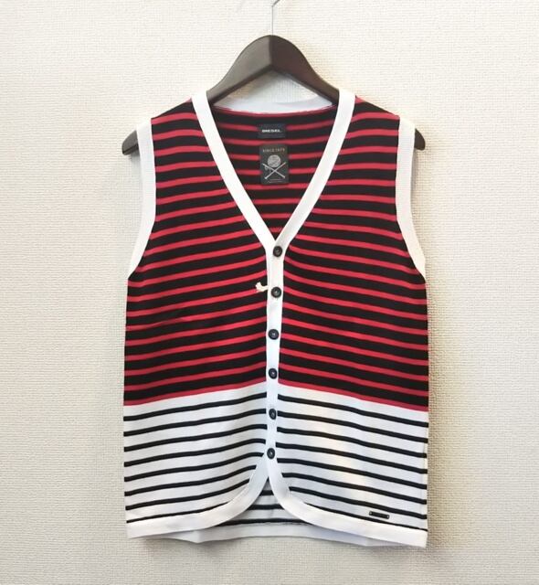 DIESEL(ディーゼル) 配色切替ボーダー柄コットンニットベスト 2 color(レッドxホワイト/ホワイトxレッド) XS/S/M のご紹介です。
