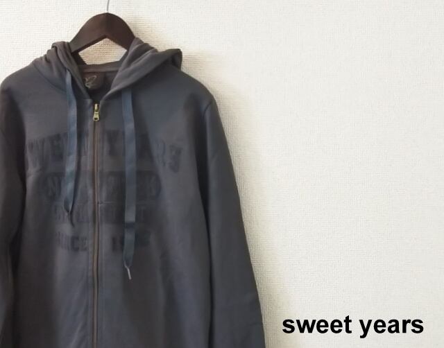 【大創業祭SALE!さらに送料無料】希少 SWEET YEARS(スウィートイヤーズ) フロッキーロゴデザインスウェットジップアップパーカー(チャコールグレー) S/M